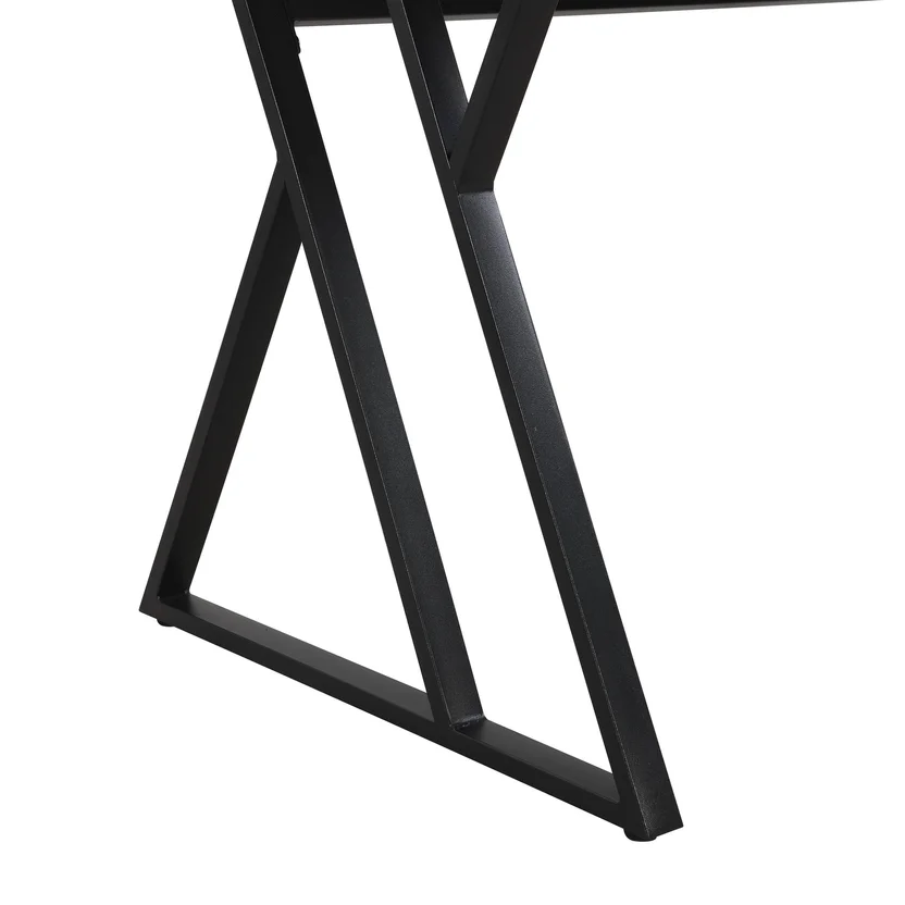 El diseño es rectangular y sin cajones, lo que facilita un espacio de trabajo limpio y libre de elementos que restarían amplitud visual. Esta configuración también simplifica la organización y permite que se use como escritorio minimalista o apoyo multipropósito, desde lugar de trabajo hasta escritorio para manualidades.
