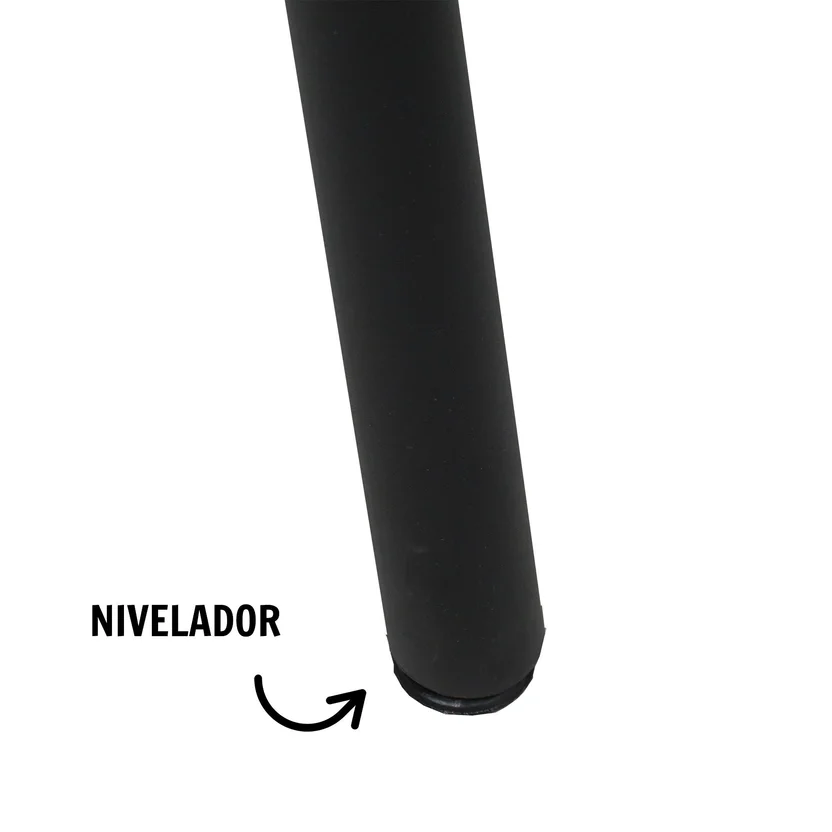 La estructura combina melamina con patas de metal pintado con pintura electrostática negra, que no solo refuerzan la resistencia y estabilidad, sino que también contribuyen a su estética industrial distintiva. Los niveladores ajustables en las patas aseguran una base firme en cualquier tipo de piso, ya sea madera, cerámica o alfombra.