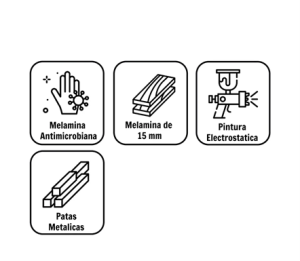 | Material estructura | Melamina + patas metálicas con pintura electrostática (negro) |