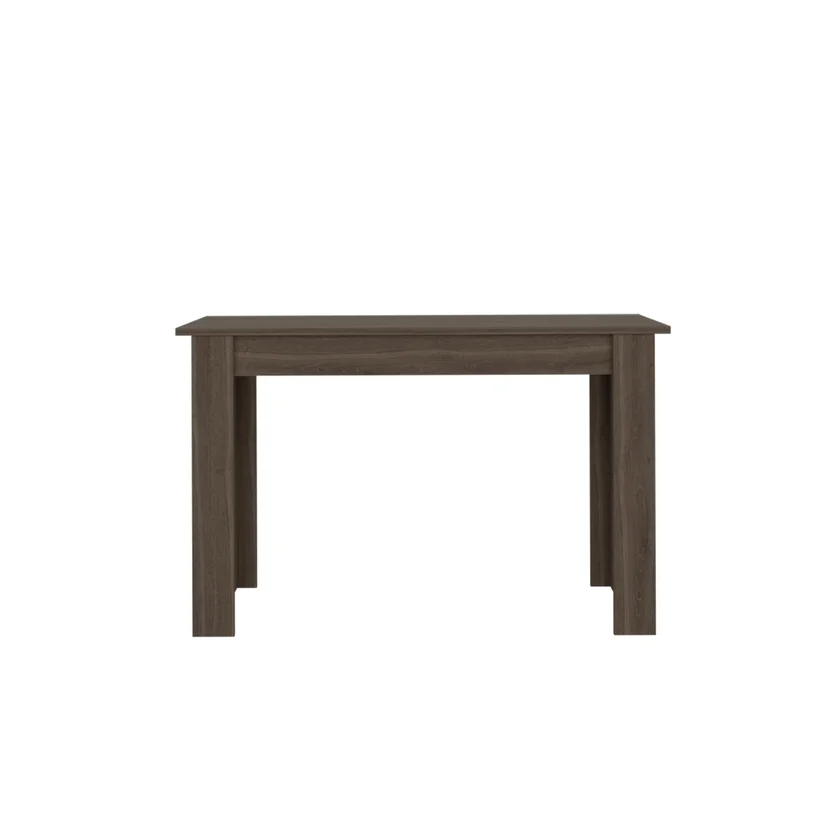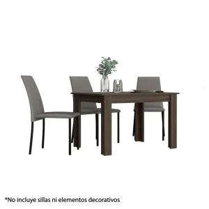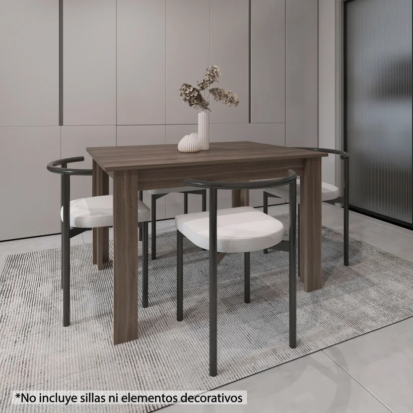 Fabricada en MDP (aglomerado de madera) recubierto de melamina con acabado semibrillante en el sofisticado tono Milán, esta mesa ofrece resistencia al desgaste y facilidad de limpieza, ideal para su uso diario. Su cubierta de 120 cm de ancho y 88 cm de profundidad ofrece espacio suficiente para hasta 4 personas, ideal para cenas en familia, reuniones cotidianas o trabajos compartidos.
