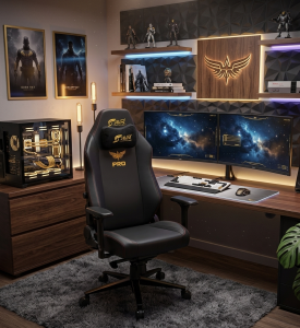 Su diseño gamer moderno en color negro combina perfectamente con setups de gaming, oficinas modernas o espacios de creación de contenido.