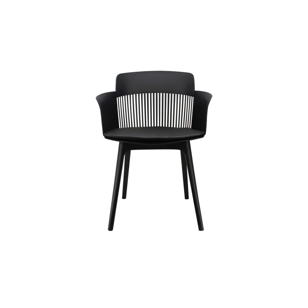 Silla Mena ¡Descubre la silla ideal para transformar tus espacios, tanto interiores como exteriores! Esta silla ha sido meticulosamente diseñada con polipropileno inyectado y una cómoda almohadilla revestida de PU para brindarte el equilibrio perfecto entre estilo y funcionalidad. Imagina la versatilidad de esta silla: con su diseño elegante y resistente, se adapta a cualquier entorno. Ya sea en tu sala de estar, en el jardín bajo el sol o en una terraza con vista a la ciudad, esta silla con brazos se convertirá en el punto focal de cualquier espacio.